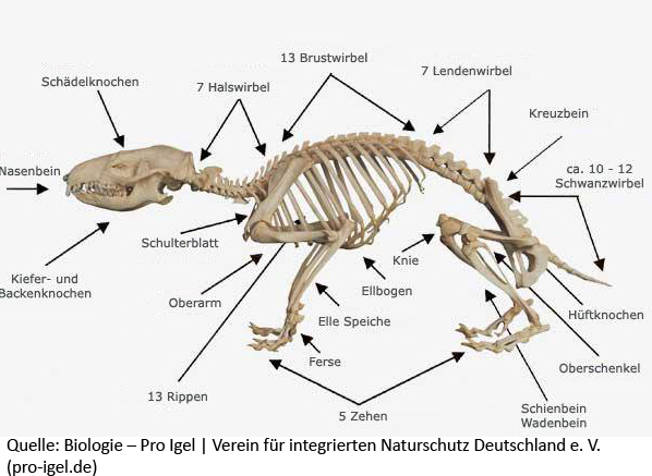 Das Skelett eines Igels ist dem von anderen Säugetieren sehr ähnlich.
